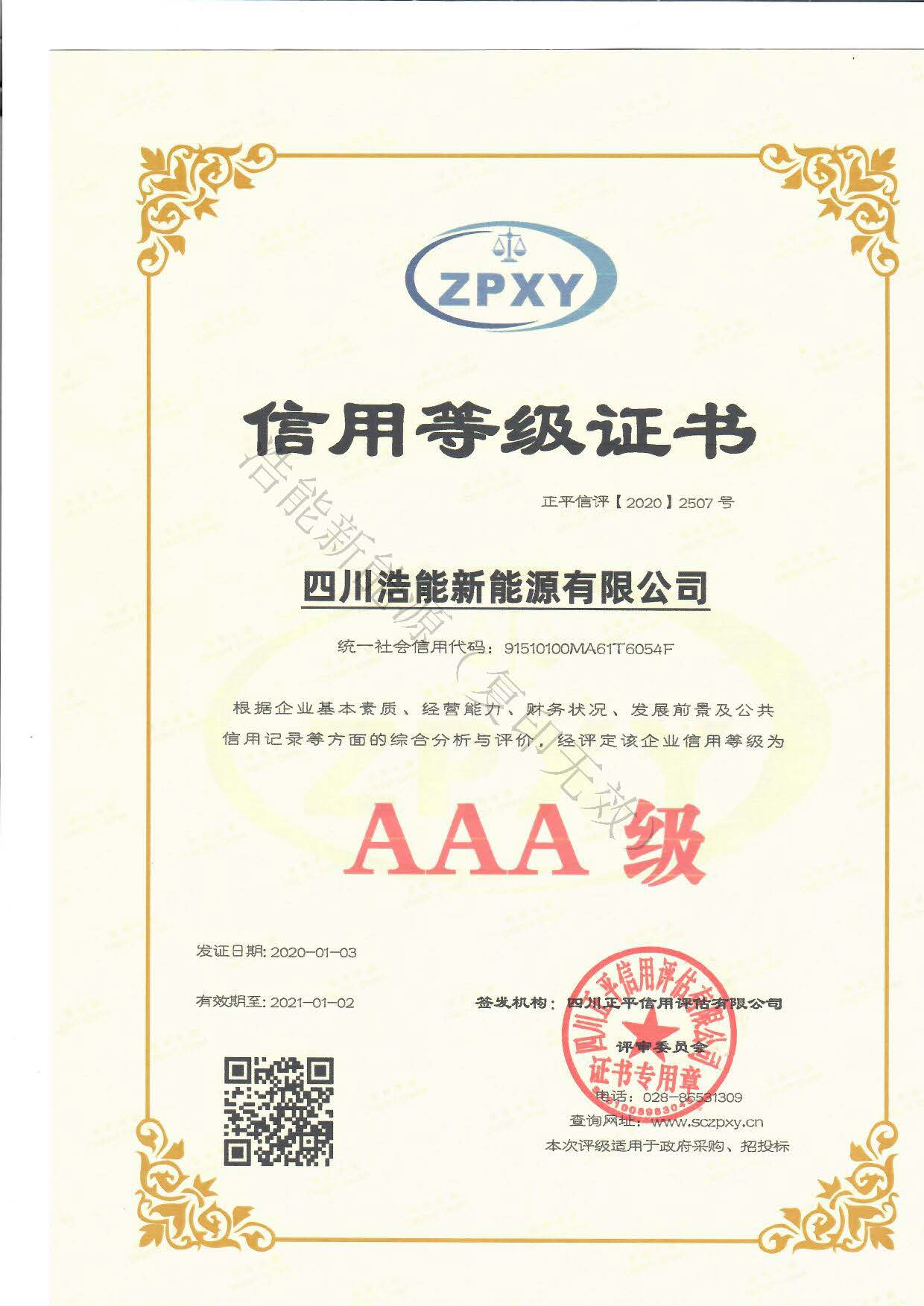 AAA信用等級證書(shū)